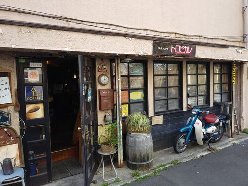 水戸市のカフェ「トロピカル」さんにお邪魔しました。 お店は水戸駅北口から徒歩にして10分かからないという立地。 中央郵便局を曲がり、県立図書館や三の丸庁舎に向かう道から一本入ったところにあります。 ↑入口に置かれた、味のある看板とケトル。 ↑店内…