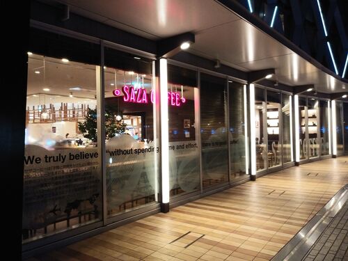 水戸駅の駅ビル「エクセルみなみ」の中のカフェ「サザコーヒー(SAZACOFFEE)水戸駅店」さんにお邪魔しました。 1枚目の写真はコンコースから臨むお店の外観。 店内の明かりが夜のコンコースに映えて綺麗です。 ↑店内の様子を続けて2枚。駅ビルの入口から…