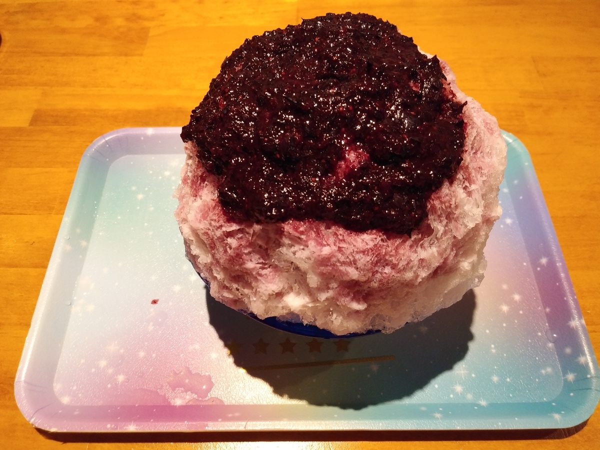 ↑ブルーベリーのかき氷です。見た目の迫力がとてもすごいです・・・