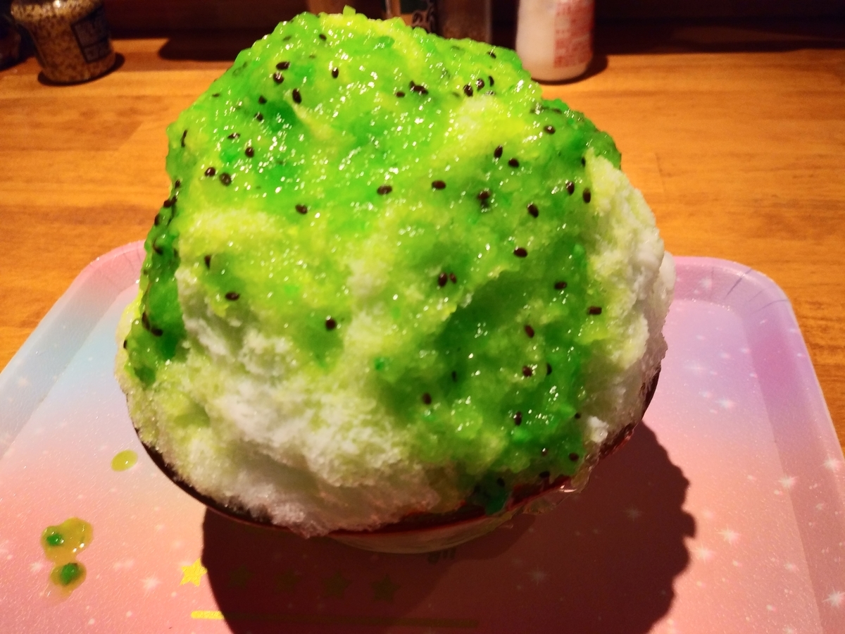 ↑こちらはキウイのかき氷です。見ての通り種ごとシロップになっており色合いが鮮やかですね。