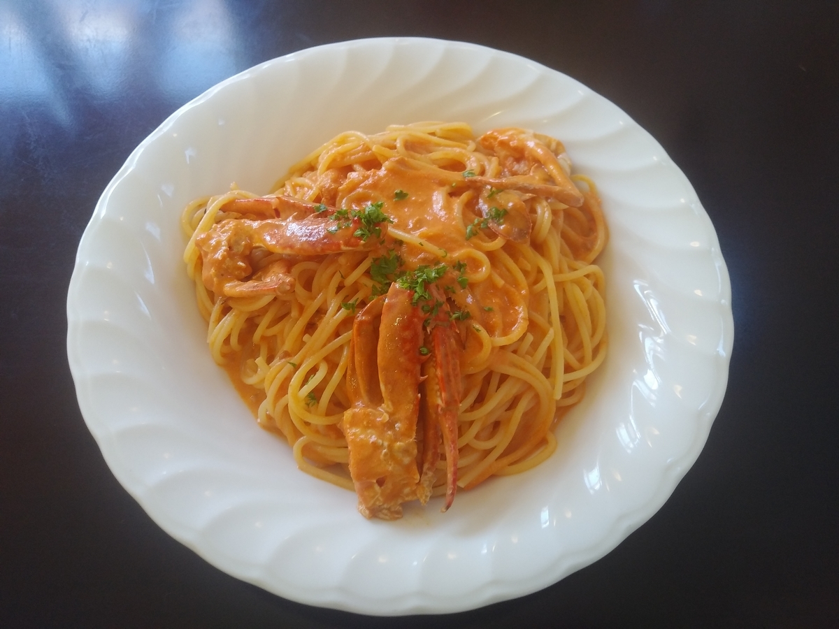 ↑「渡り蟹のトマトクリームスパゲティ」です。