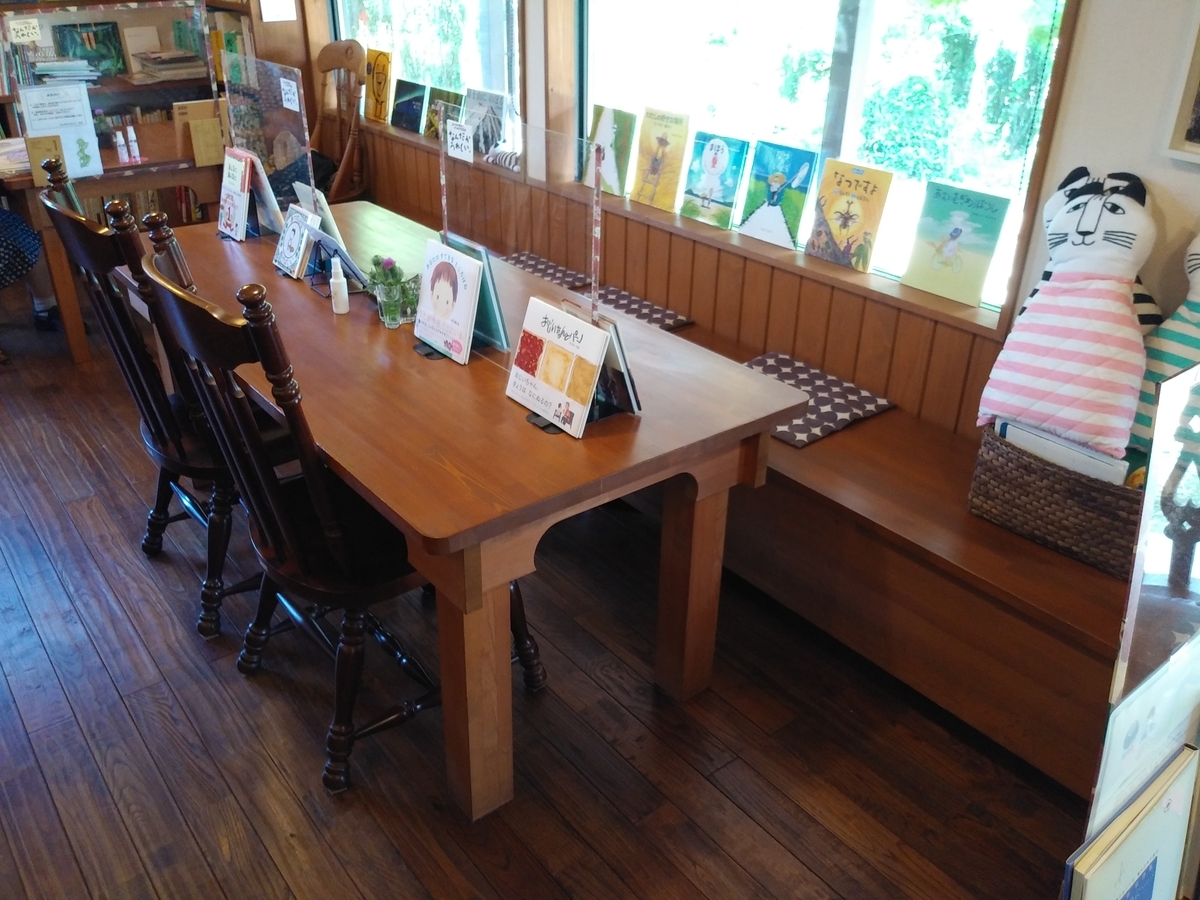 こちらは絵本カフェで、店内のあちこちに絵本が並べられています。