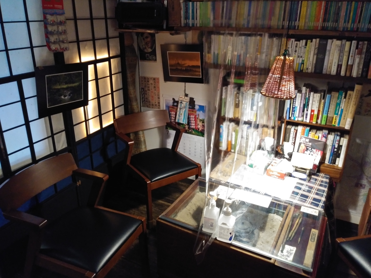 レトロな雑貨、多数の書籍に囲まれた独特な空間。