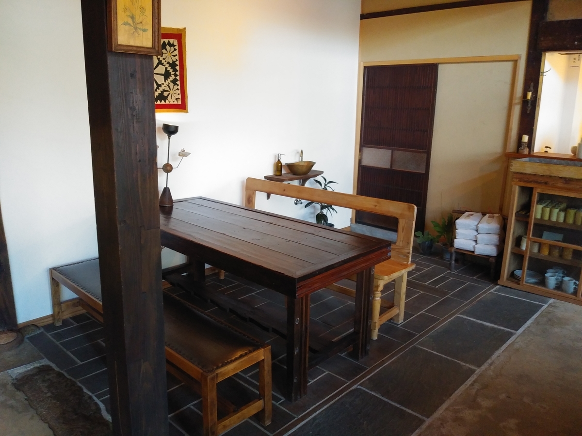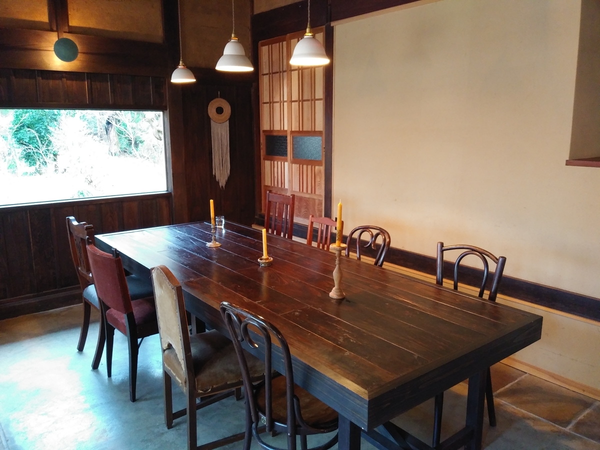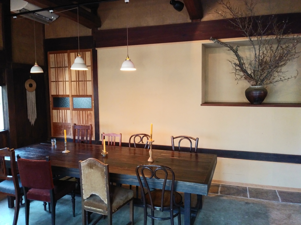 「古民家にキャンドル?」と思いますが、いい意味で溶け合っています。