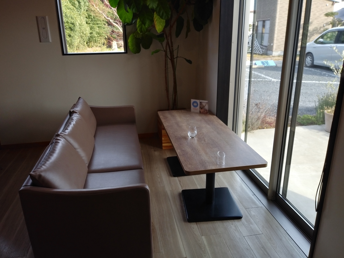 ↑窓際のソファー席。