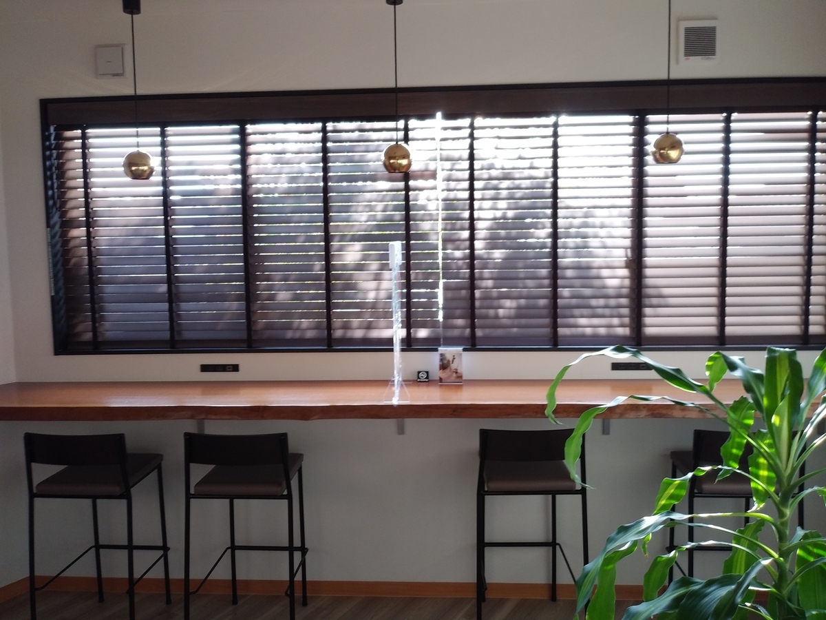 (ブラインド越しの木の影がまたいいですね)