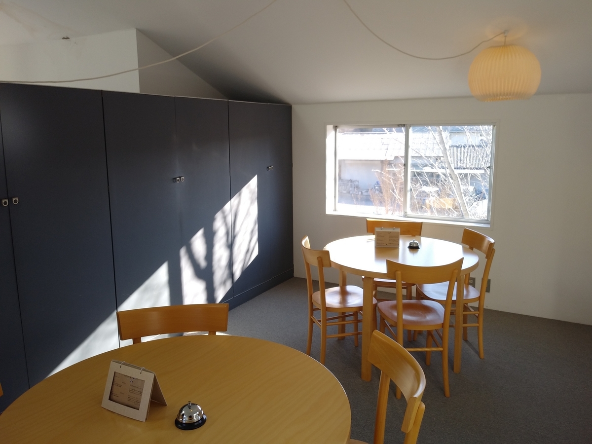 ↑建物内のカフェスペース(旧居間)の様子です。