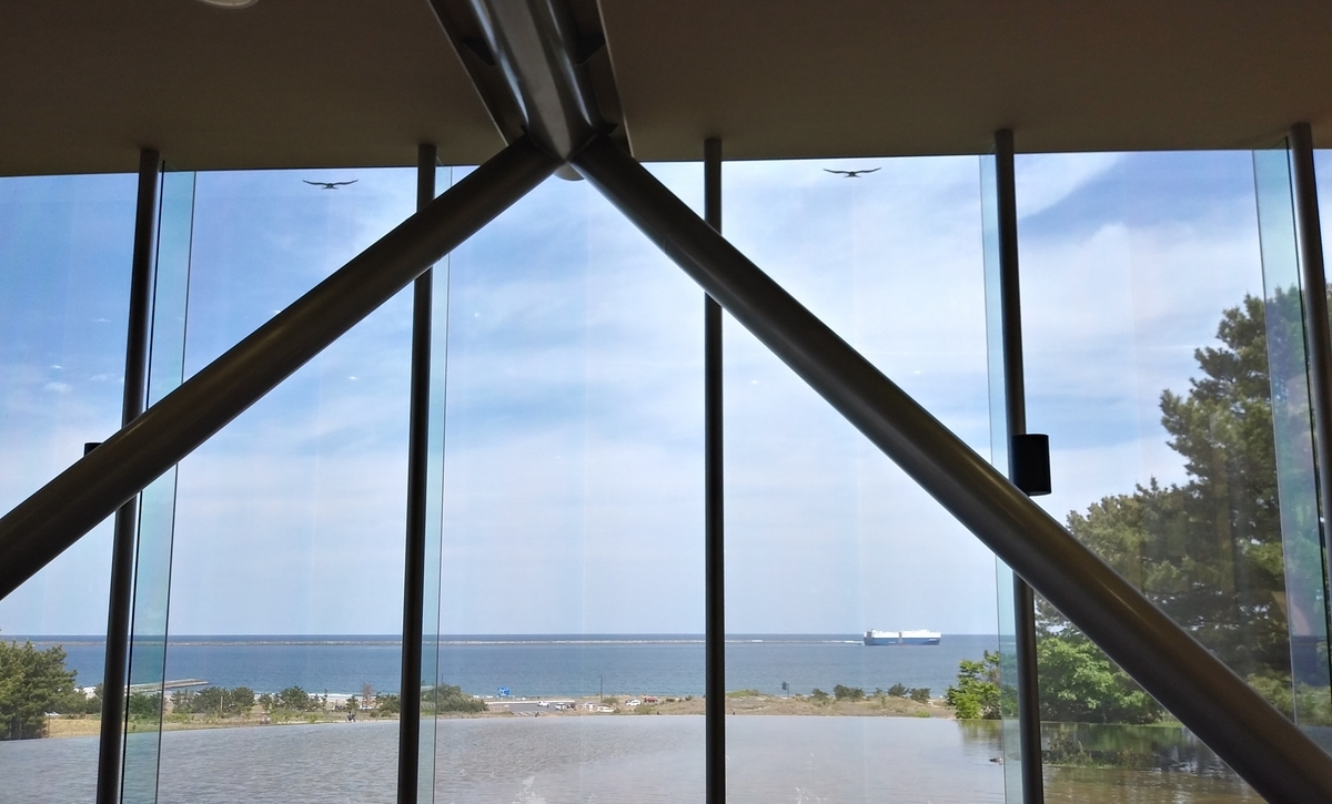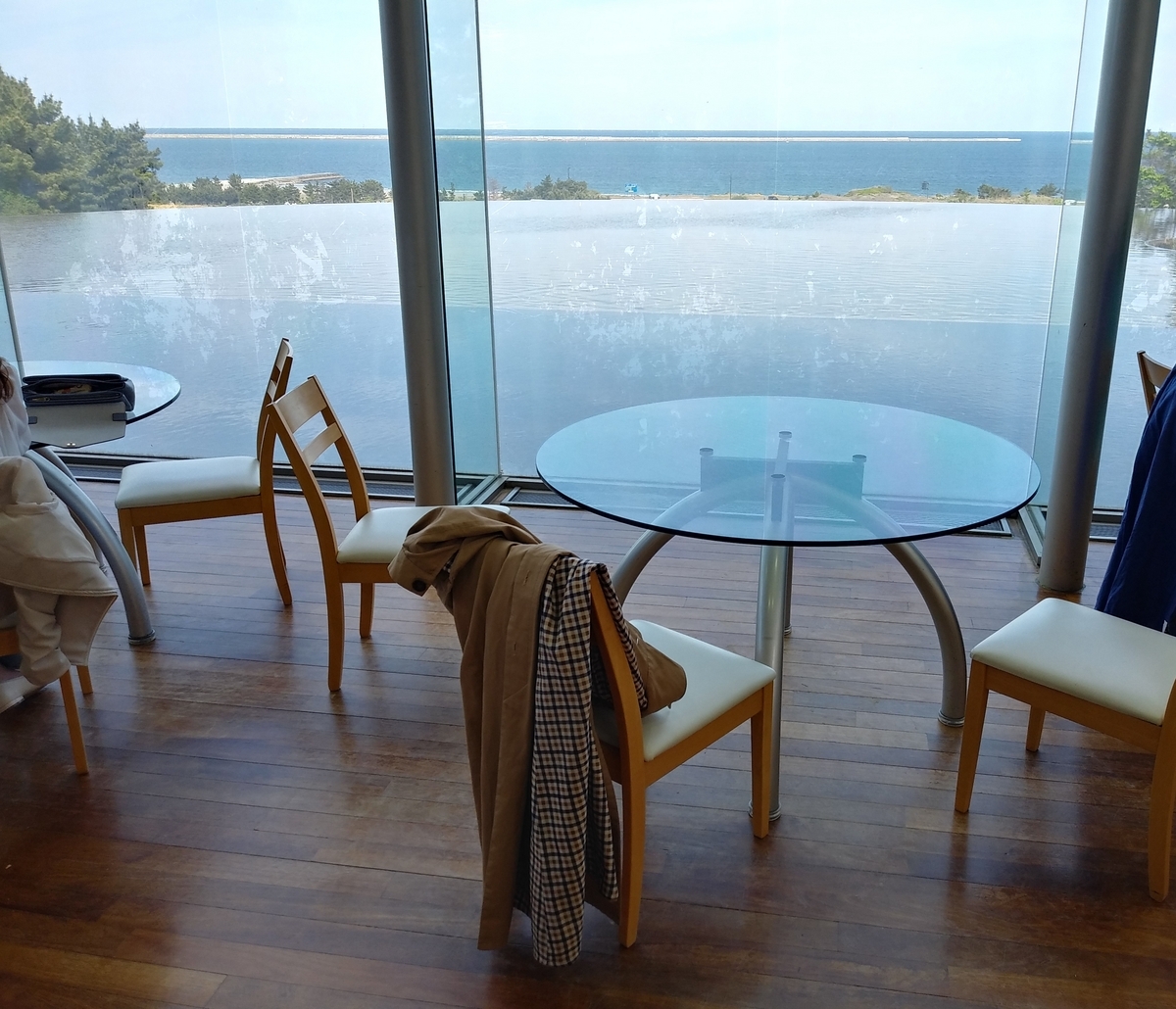 なお、施設に面する形で湖が広がっており、施設内から見たときに、まるで海に直接面しているように感じます。