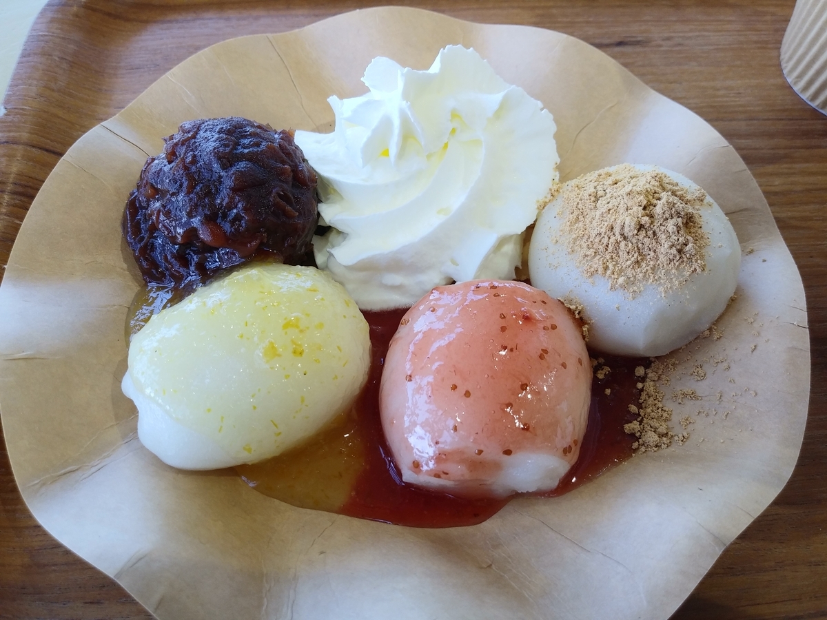 茨城県産米のおだんごとのことで、もちもちと歯ごたえのよい食感でした。