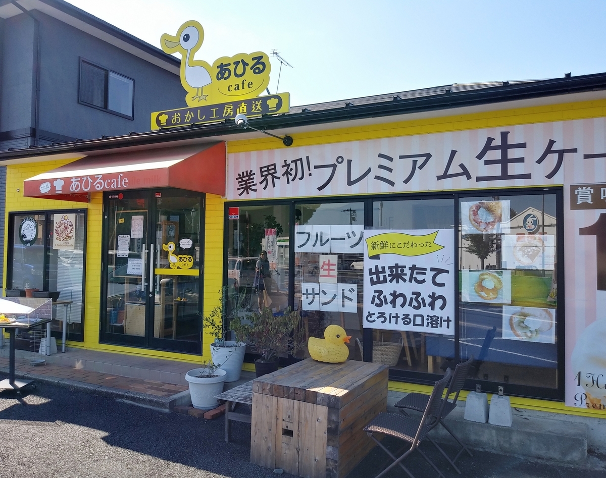 赤塚小学校・中学校のほど近くのお店で、あひる愛の伝わる外観。