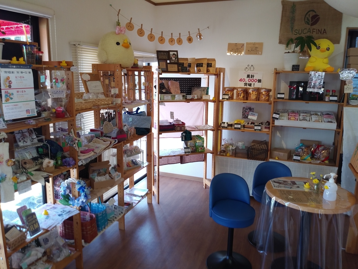 ↑店内では雑貨や小物、お菓子などの販売もあります。
