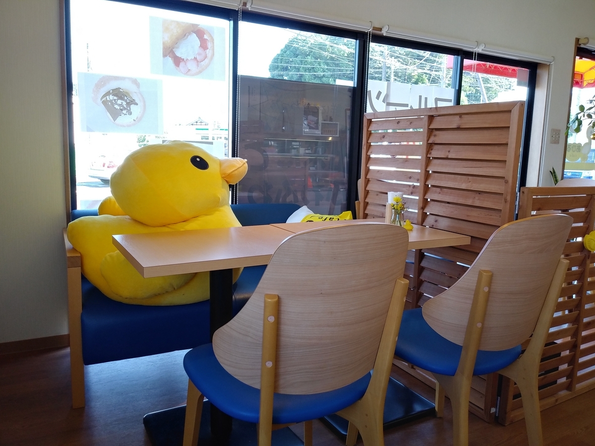 ↑店内奥のテーブル席に座る(?)大きなあひるのぬいぐるみ。