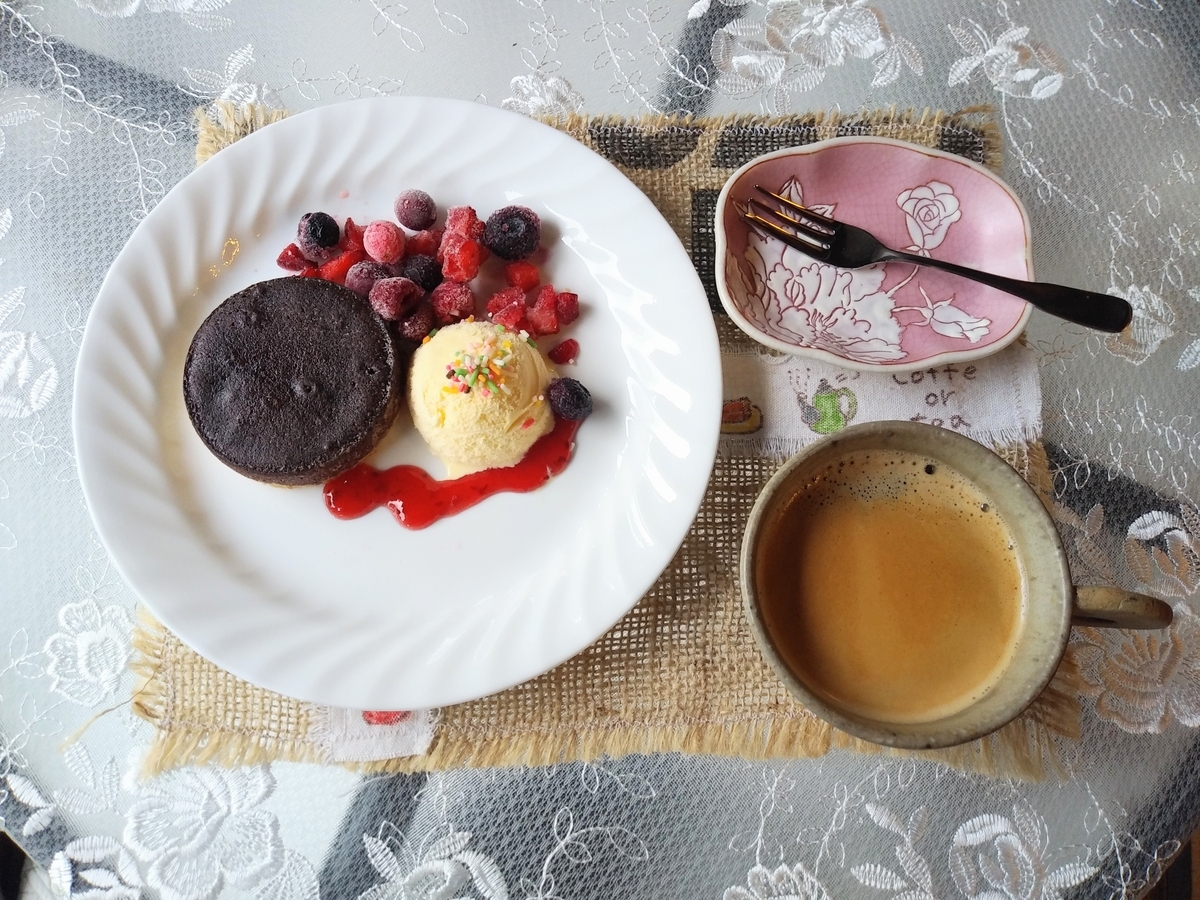 見た目の美しさも、コーヒーの苦さとスイーツの甘さの組み合わせも絶妙・・・(注文して正解でした・・・)。