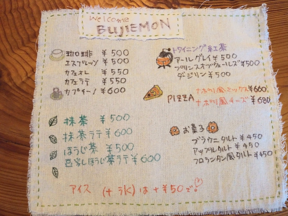 ↑手織りの可愛らしいメニュー表。