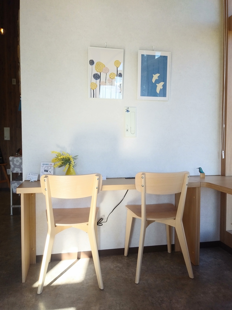 ↑座席に飾られている絵画や小物も可愛らしい雰囲気です。