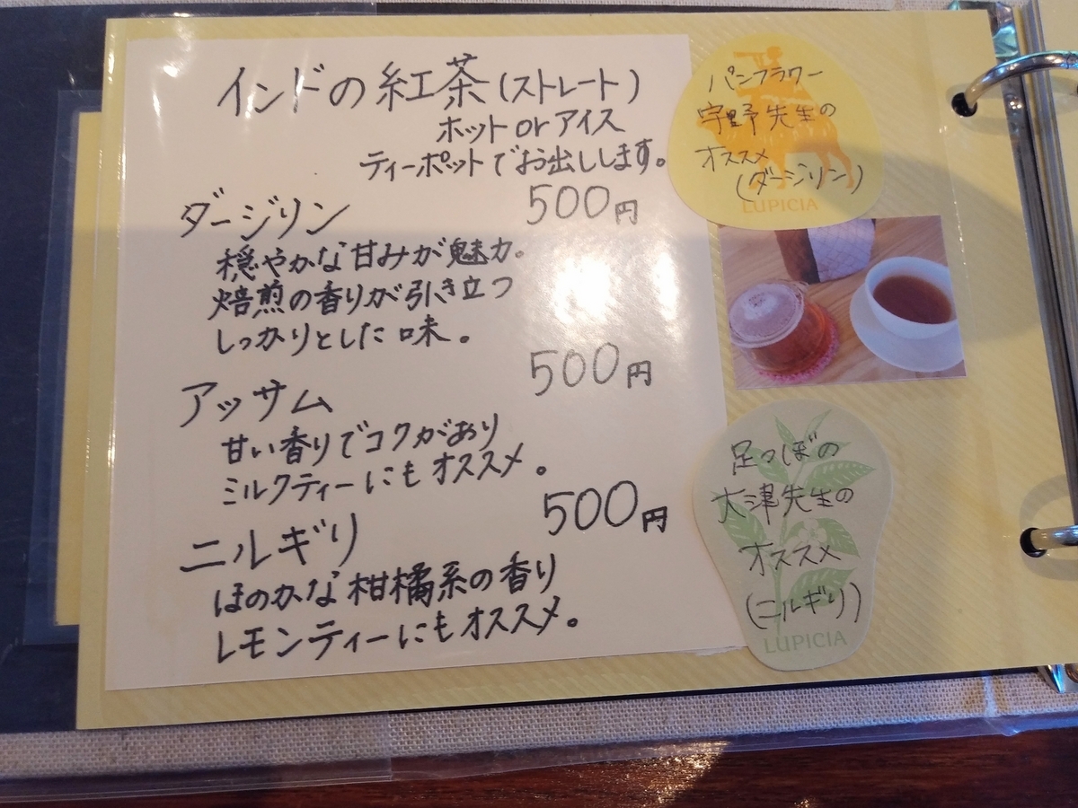 ↑「インドの紅茶(ダージリン)」を注文。