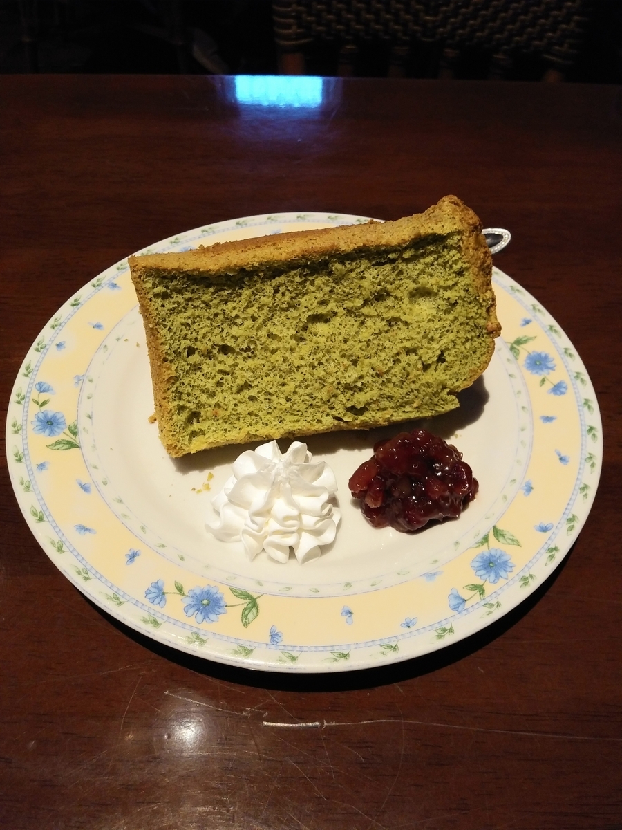 ↑人気メニューの「紅茶シフォンケーキ」を注文。