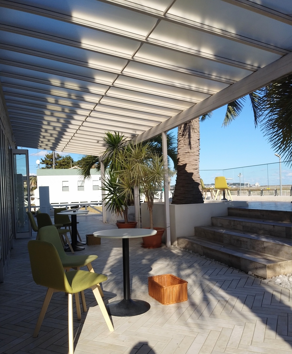 海をバックにした、白を基調した内観・・・。