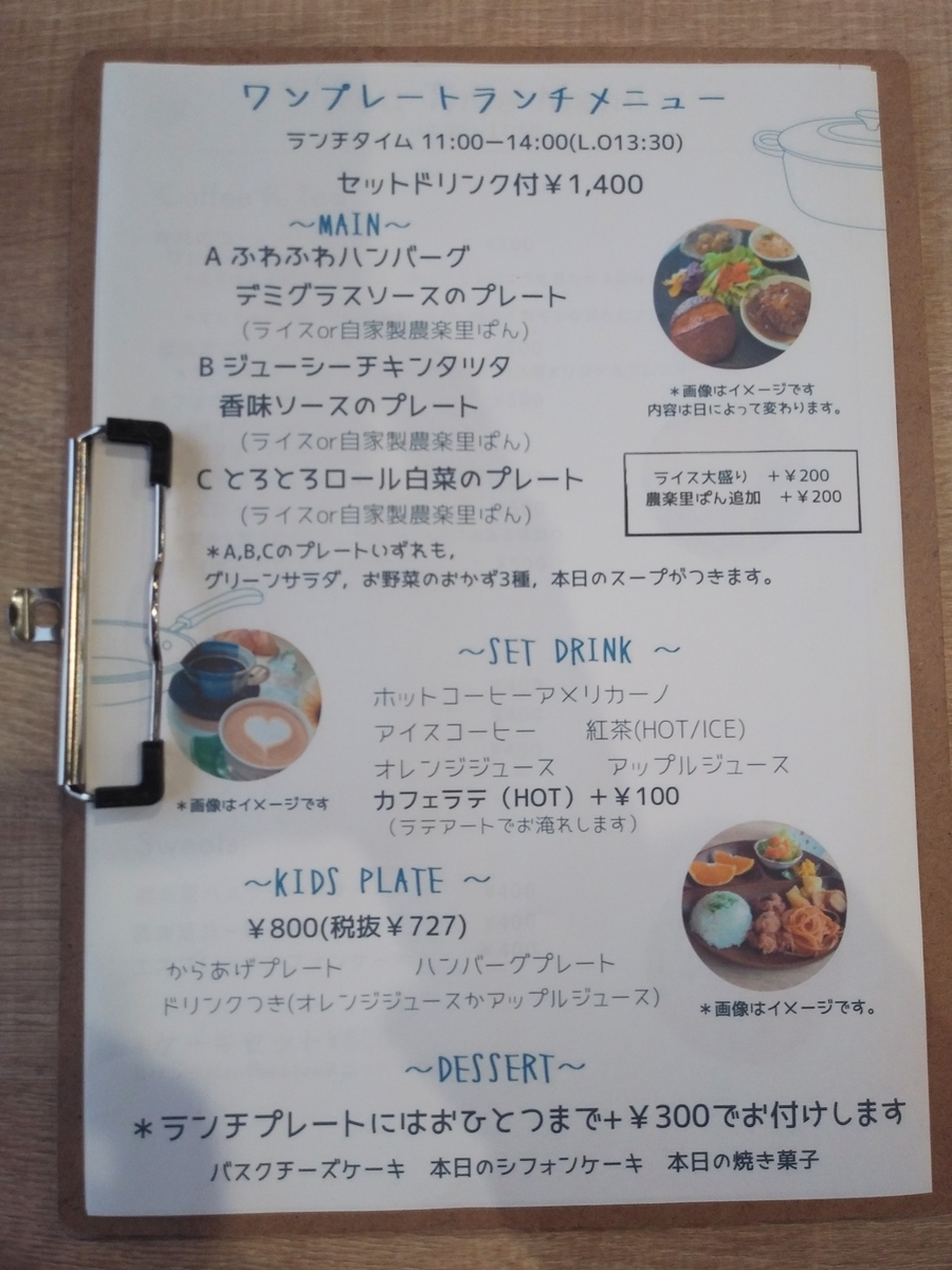 ↑メニュー表です(チキンタツタのプレートと最後まで注文を迷いました・・・笑)。
