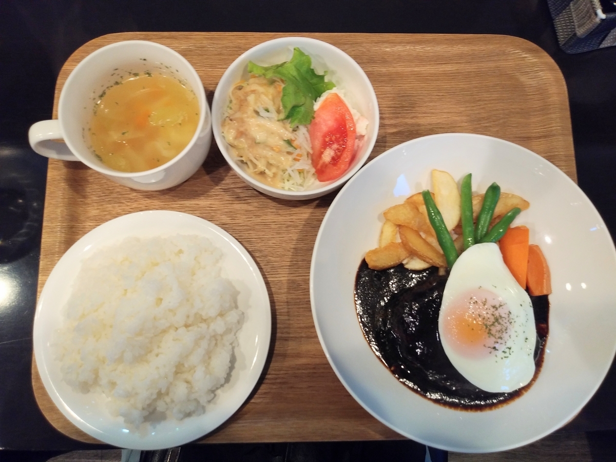 出てきたハンバーグの大きさにびっくり・・・!(しかも写真では伝わりづらいですが、かなり肉厚です)。