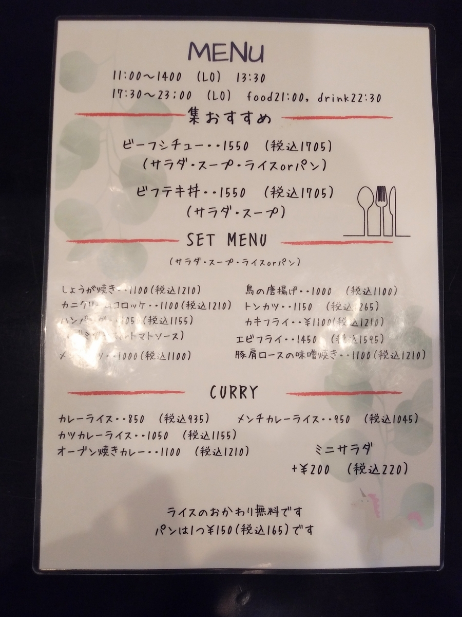 17:30~23:00(L.O food 20:30 drink 22:30)