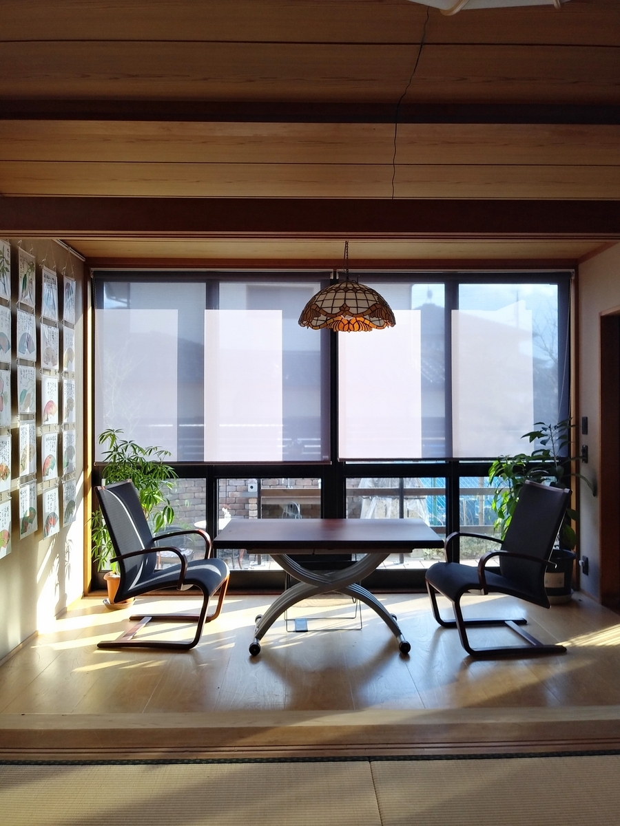 暖かい日の入る、素晴らしい雰囲気の縁側。