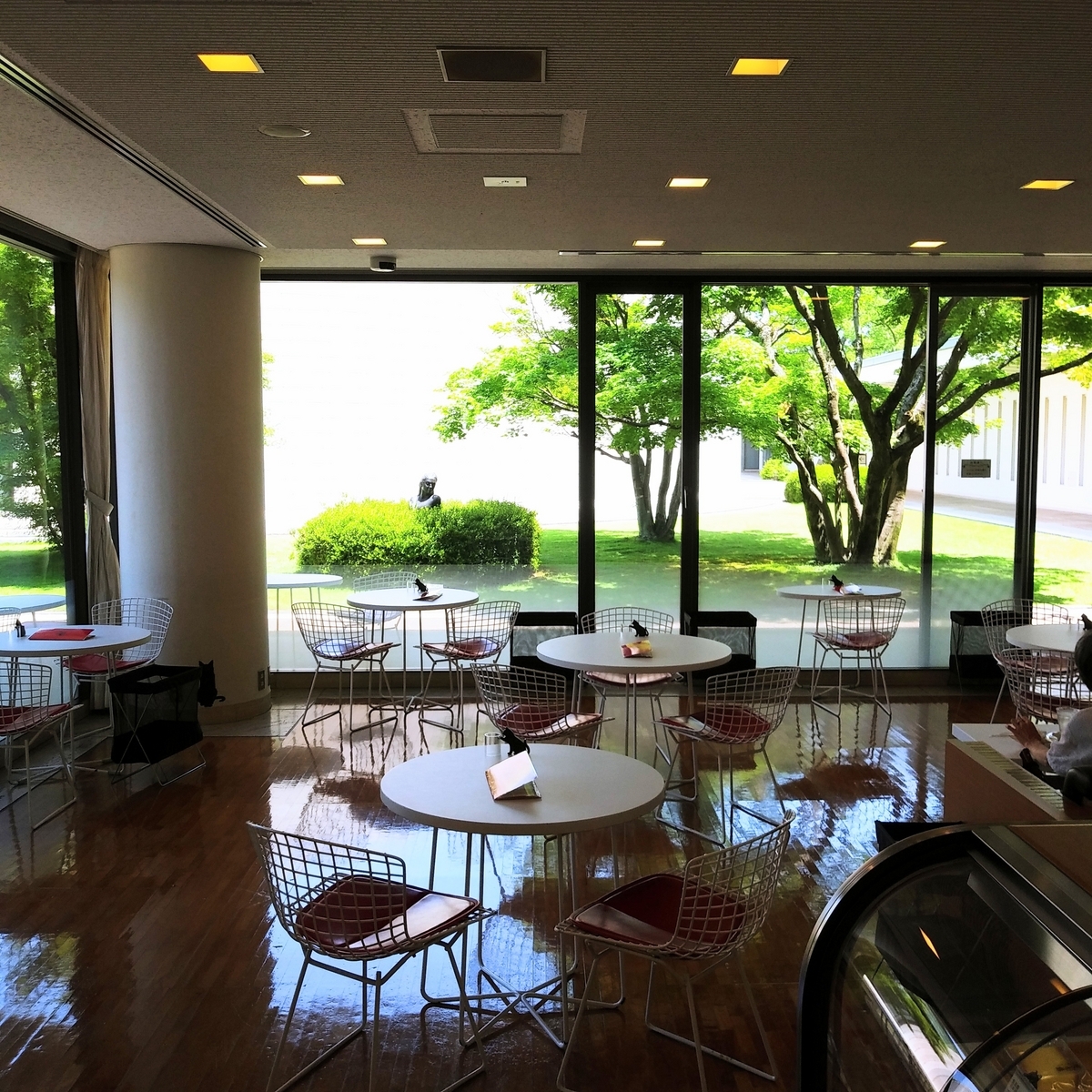↑店内からは美術館の中庭を臨むことができます。