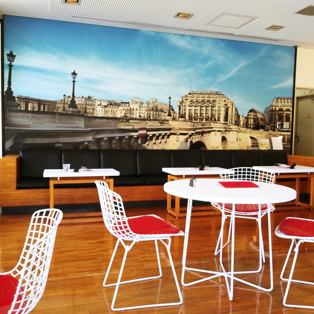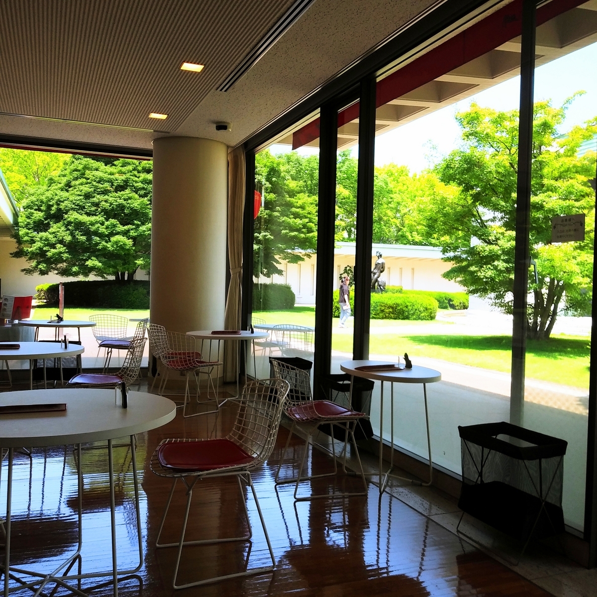 カフェは美術館のエントランスからも中庭からも入れる造りで、1枚目は中庭からの外観です。