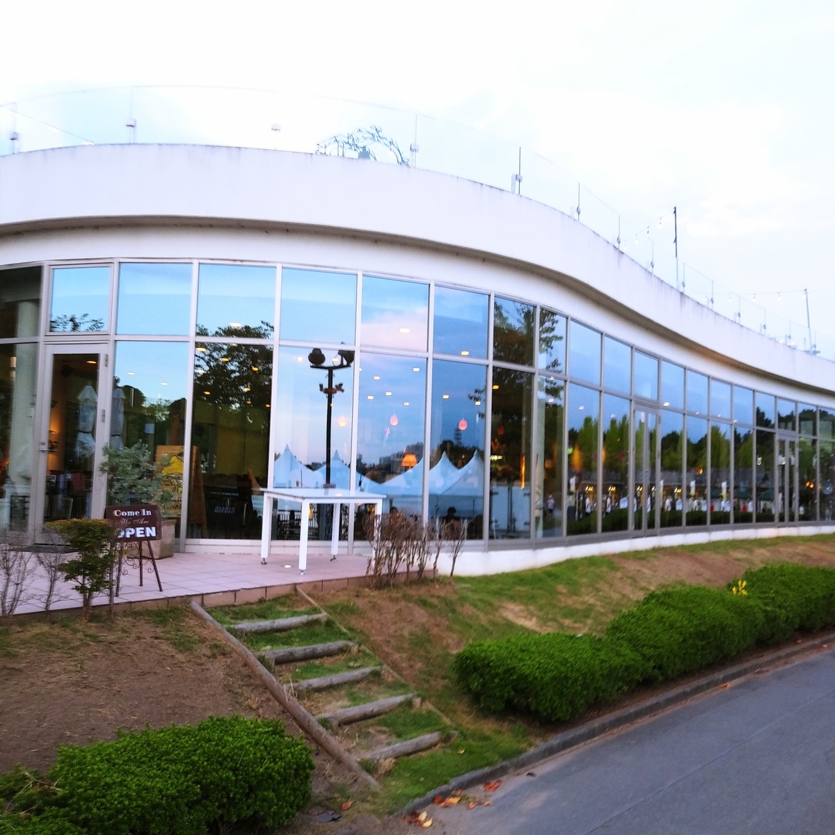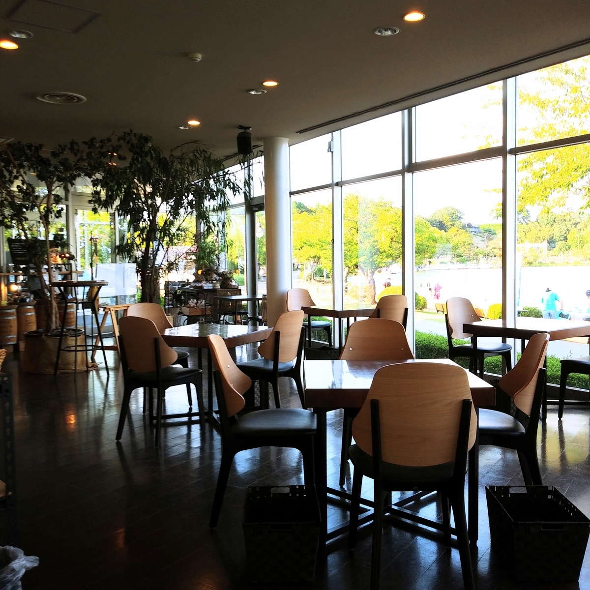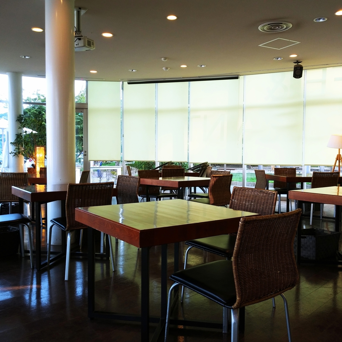 ↑ガラス張りは開放感の演出だけではなく、外の千波湖を見るにも最適。