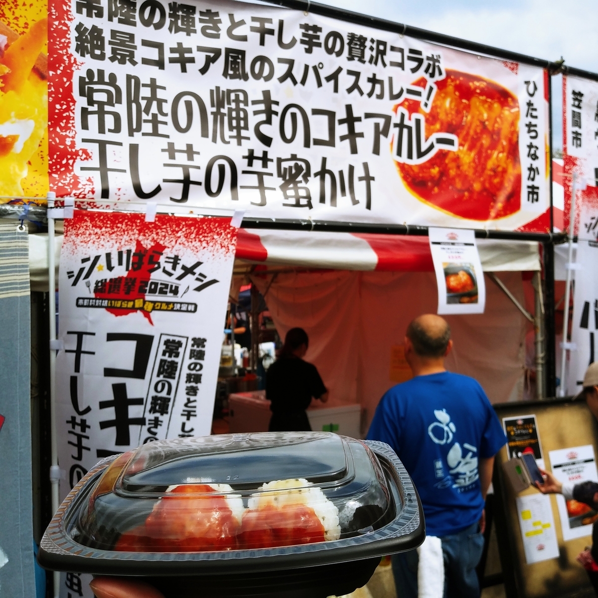 ↑ひたちなか市の「常陸の輝きのコキアカレー 干し芋の芋蜜かけ」。