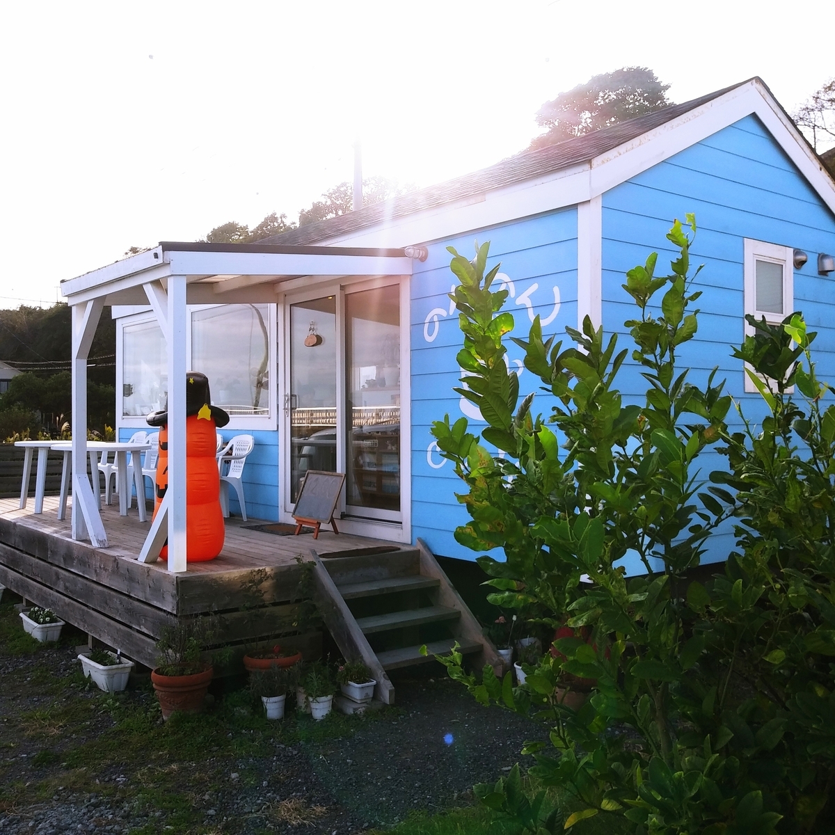 太平洋を一望できるカウンター席と、テーブル席が2つという内観。