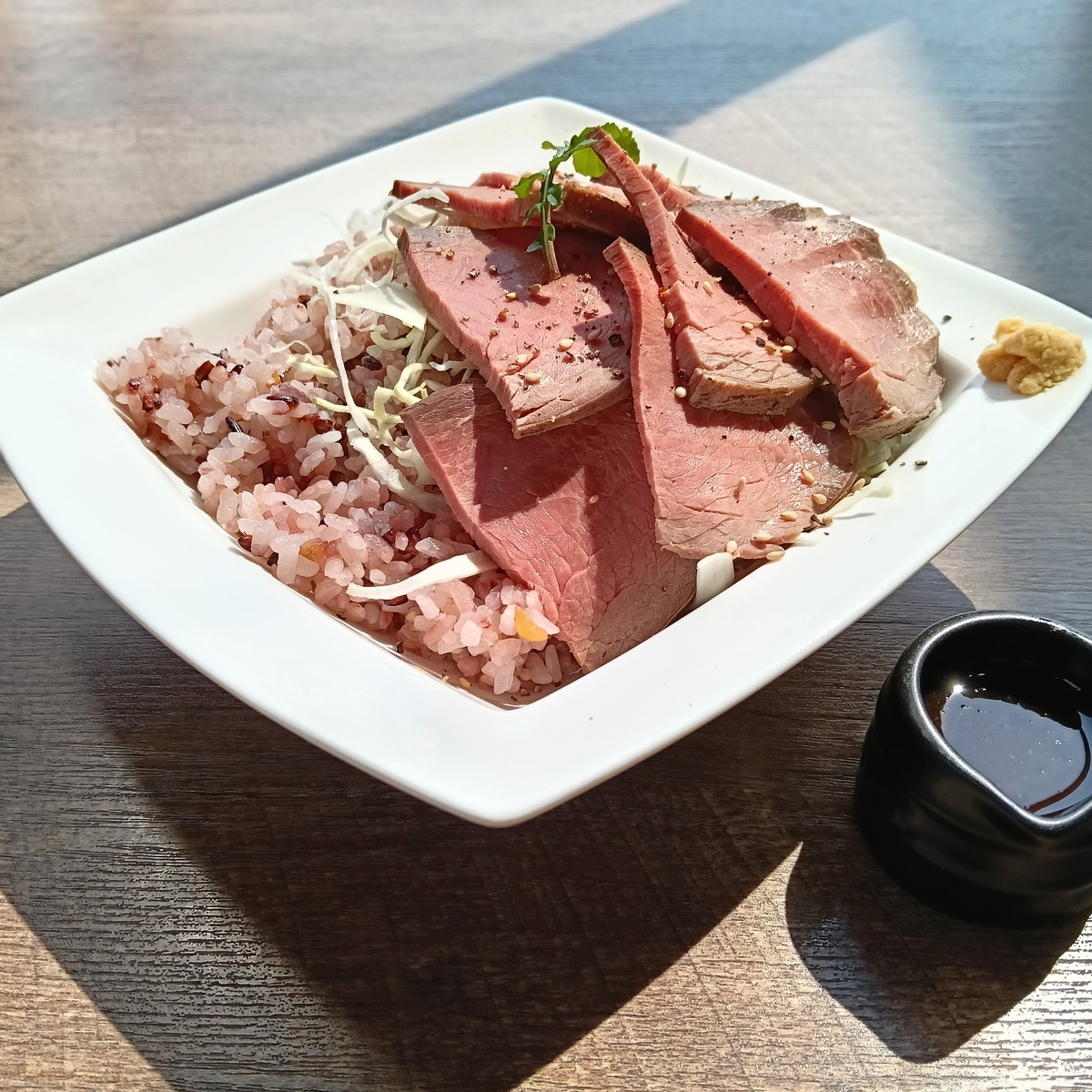 ↑ランチの時間帯に訪問し、ローストビーフ丼を注文。