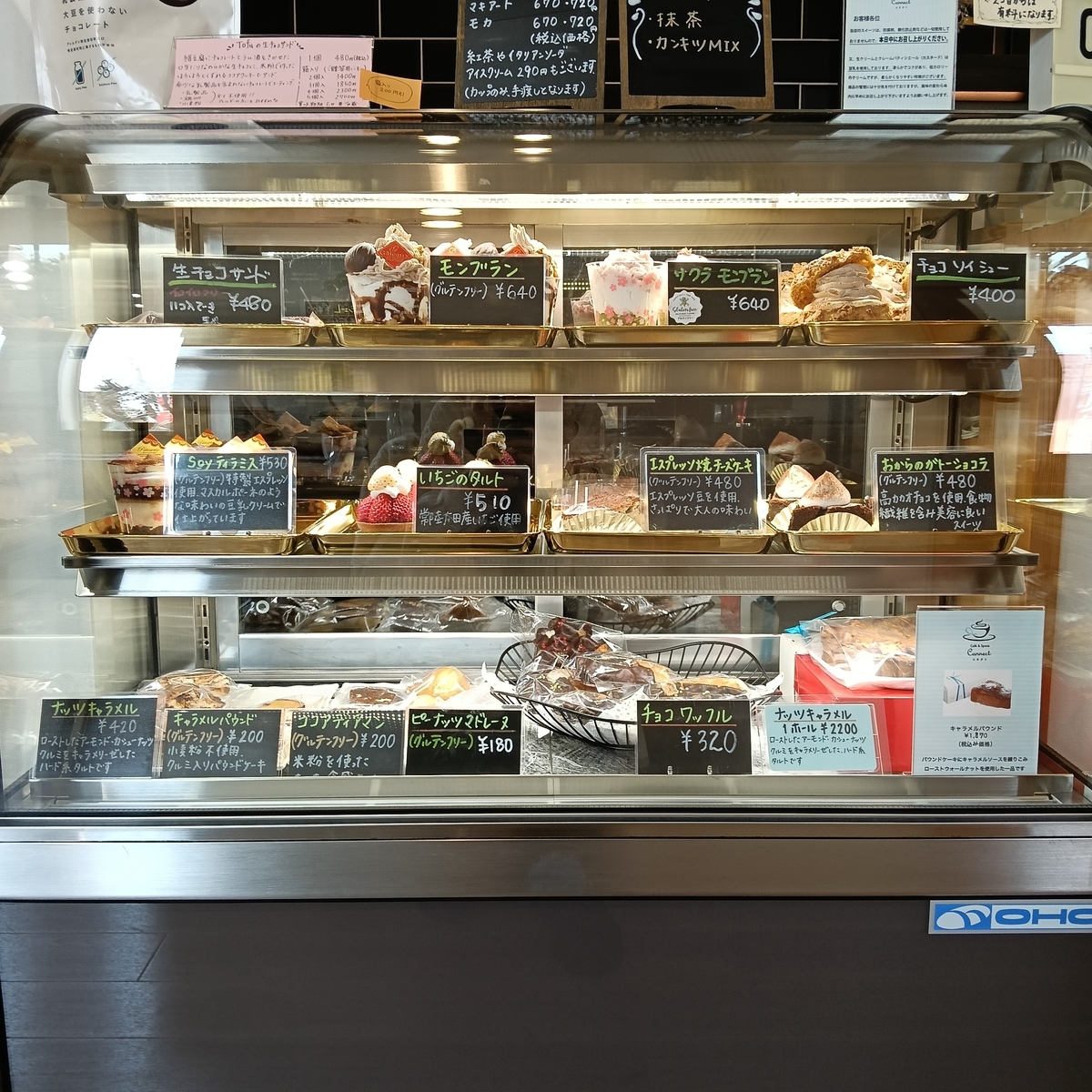 ↑ショーケースの中には美味しそうなケーキやお菓子がずらりと並べられていました。