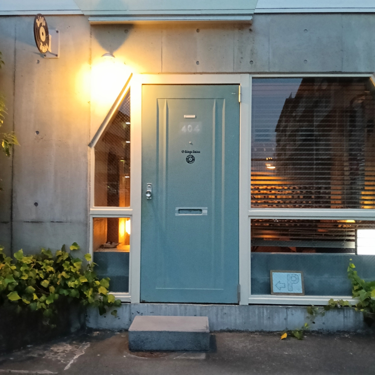 こちらはジャズ喫茶で、扉と表札にはレコードのマークがあります。