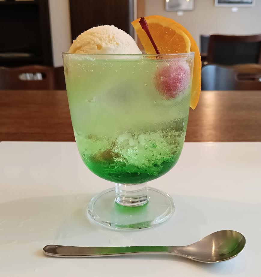 ↑クリームソーダを注文。この涼やかさは、暑い夏にぴったり・・・!